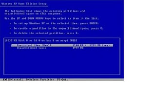 13. Kemudian arahkan pointer pada posisi "unpartitioned space", lalu tekan "C" maka akan muncul gambar seperti gambar sebelumnya, dalam hal ini layar yang akan muncul seperti gambar sebelumnya menunjukan sisa partisi yang telah anda bagi, jika anda cuma membagi 2 partisi saja maka langsung tekan "ENTER" tapi jika anda ingin mempartisi lagi sisa hardisknya maka tinggal di bagi lagi aj, seperti langkah-langkah sebelumnya, mengertikan maksud saya....??